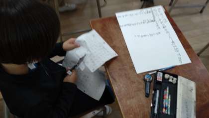 学習問題づくりに取り組みました。説明文の作者名など、三択のクイズにして作っています。