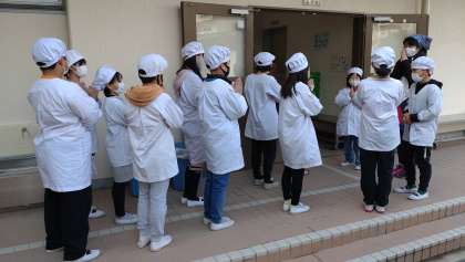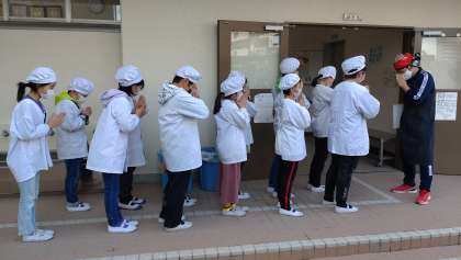 毎回、しっかりと丁寧に挨拶をしています。写真は、5年生の挨拶の様子です。