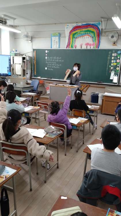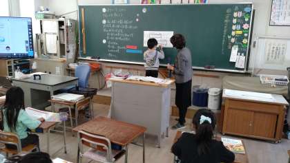 昨日の3限目に、2年生の公開授業がありました。図をかいて、問題を解決する学習です。積極的に発表しています。