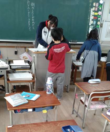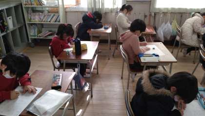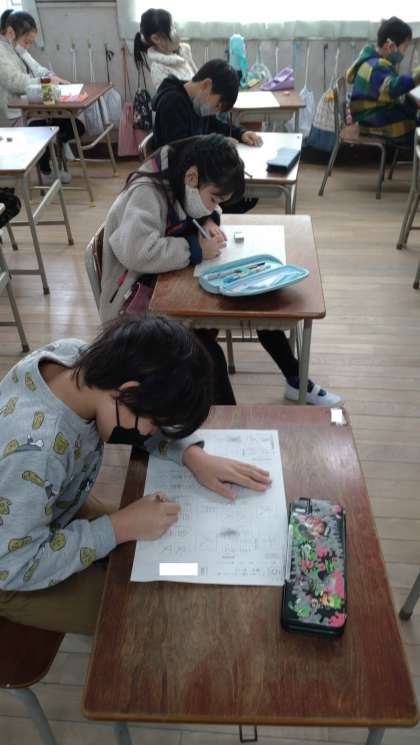 漢字の学習をしました。「千」→「活」「大」→「天」「月」→「用」など、形の似ている習った漢字を復習しています。答え合わせても丁寧に取り組んでいます。