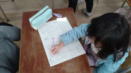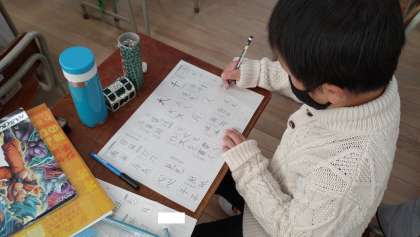 漢字の学習をしました。画の方向について学習しています。漢字のいろいろなおれやまがりとそりについても練習しています。