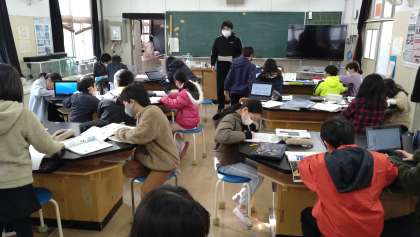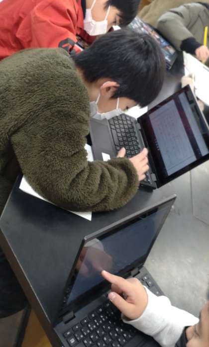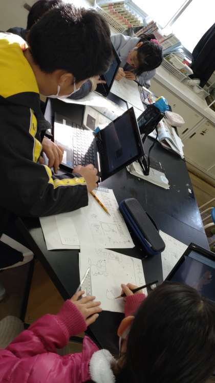 2学期に学習した内容を理科新聞にまとめています。パソコンも活用して、調べています。