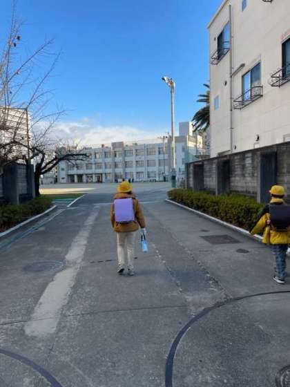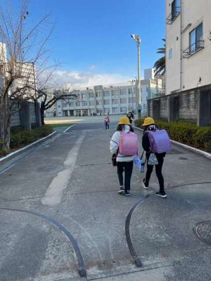 寒さが厳しい中、子どもたちが元気に登校してきました。