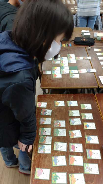 百人一首をしました。言葉の響きやリズムを感じ取って伝統的な文化に親しんでいます。