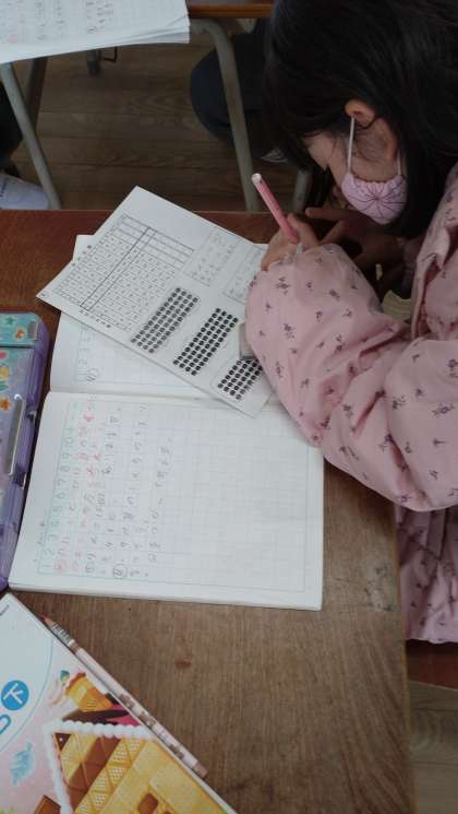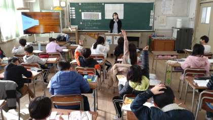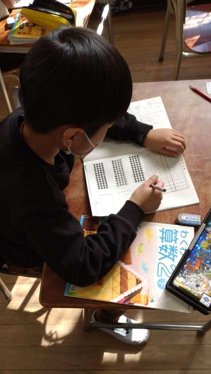 2年生で算数科の公開授業がありました。九九のきまりを使って課題を解決しています。九九の範囲をこえてかけ算の計算の仕方を考えています。
