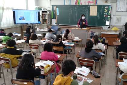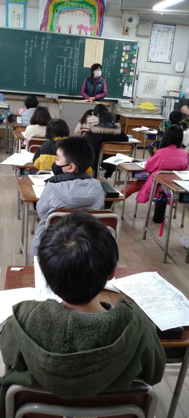 物語文「かさこじぞう」の学習をしました。登場人物の言動を場面の時系列に沿って読み取っています。