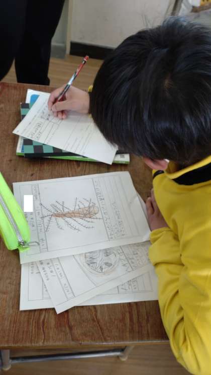 4年生で理科の公開授業が行われました。冬の生き物の学習です。これまで観察記録してきたヘチマや他の生き物を発表し、成長と季節の変化とのかかわりを学んでいます。