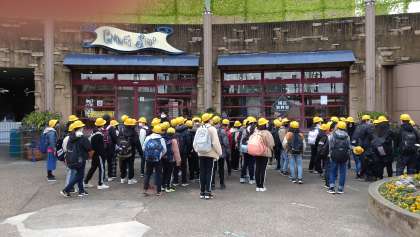 ひらかたパークに到着しました。検温所を通過して、全員無事に入場制限の調整を待ってから入場しました。いよいよ班ごとの活動がはじまります。