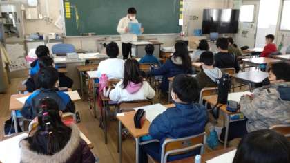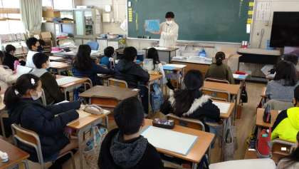下絵もできて、版画の説明を聞いています。これから、木版画に取り組んでいきます。