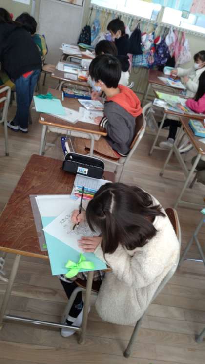 大きくなった自分のことを振り返りまとめています。誕生から今までの様子を自分たちで調べて、記録にまとめて自分の成長を振り返る学習です。