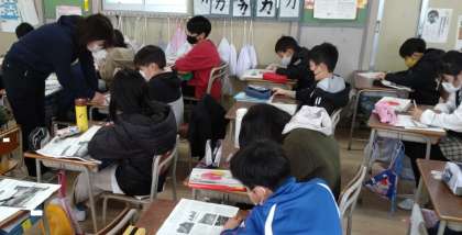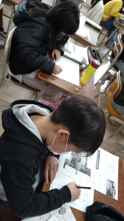 説明文「人をつつむ形−世界の家めぐり」の学習をしました。この時間は、日本の土地の特徴や人々の暮らし方と日本の家のつくりについて、2つの観点から考え、まとめています。