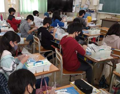 「未来の私」を想像した作品づくりに取り組んでいます。将来なってみたい職業ややってみたいことを芯材と紙粘土を使って表現しています。