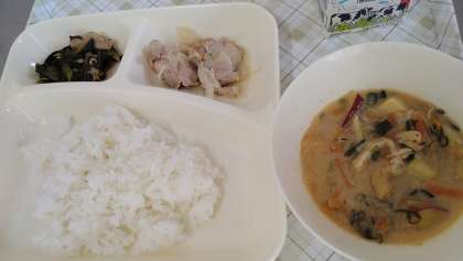 今日の給食は、鶏肉のゆず塩焼き、みそ汁、こまつなの煮びたし、ごはん、牛乳です。小松菜は、冬場が旬のビタミン、鉄分、カルシウムが豊富な緑黄色野菜(みどりの食べ物)です。旬を迎える冬の時期は、葉の緑色が濃くなり味もよくなります。今日も好き嫌いなくしっかりと食事をとってほしいと思います。