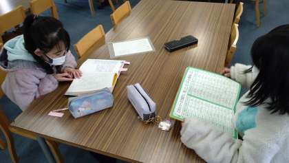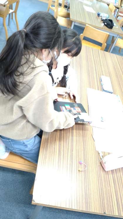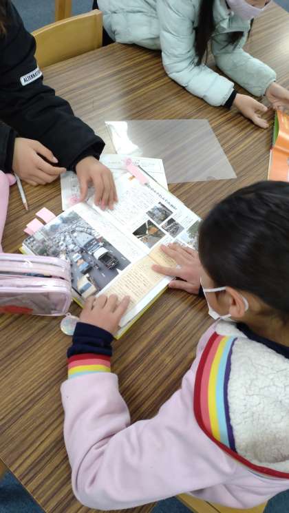 「外国のことをしょうかいしよう」の学習に取り組んでいます。図書室で、外国のことについて調べています。