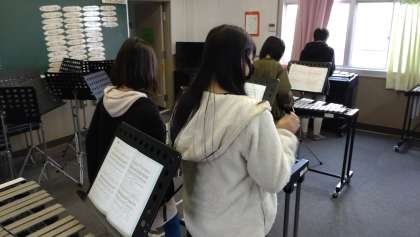 「威風堂々」の合奏をしました。音色や速度、強さの変化をくわえたりして工夫して演奏しています。