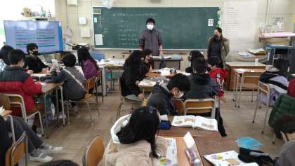 中学校でしたいことを英語で伝え合いました。楽しみにしていることや学習したいことなど発表しています。