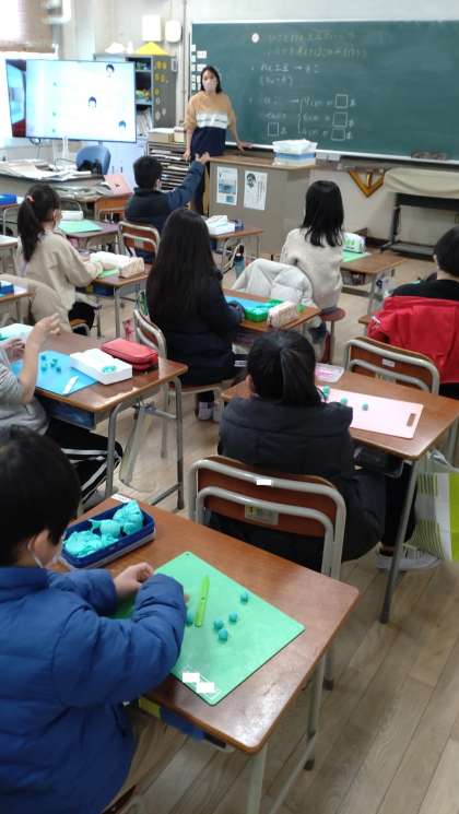 ひごと粘土がいくついるか考えてはこの形をつくる学習をしました。頂点と辺の構成を考える学習です。