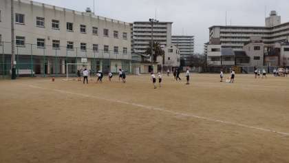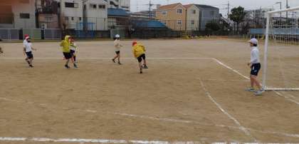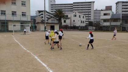 3年生では、ゴール型ゲームとしてサッカーに取り組んでいます。味方にパスを出したり、シュートをしたり、ゲームを楽しんでいます。