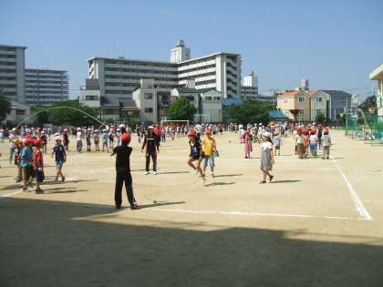 暑い中、なわとびやドッジボールを楽しんでいました。