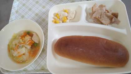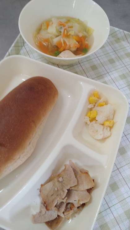 今日の給食は、豚肉のガーリック焼き、スープ、カリフラワーとコーンのサラダ、パン、牛乳です。カリフラワーは、キャベツの仲間で、ビタミンCが豊富です 。ブロッコリー同じように花蕾(つぼみ)の部分を食べます。今日も、好き嫌いなく野菜も食べてほしいと思います。