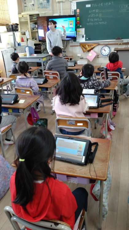 1年生もタブレットで、新しい設定をしました。全員しっかりと新しいログインユーザIDやパスワードで、ログインして設定することができました。
