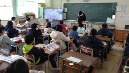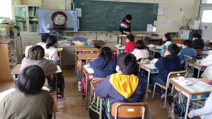 みそ汁の作り方について学習しました。動画を見て水とだしの割合などを学んでいます。