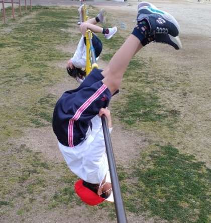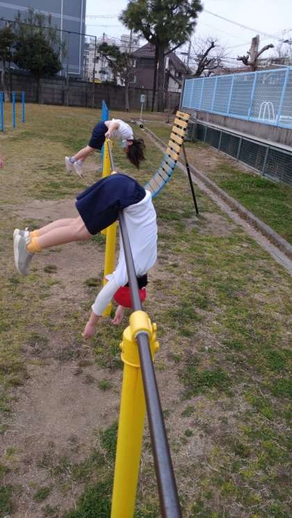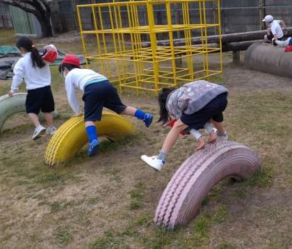 器械・器具を使っての運動遊びをしました。「先生、見てください。」と多くの子どもたちが、いろいろな技を見せてくれました。ジャングルジムやタイヤ、鉄棒など、子どもたちは運動遊びを楽しんでいます。