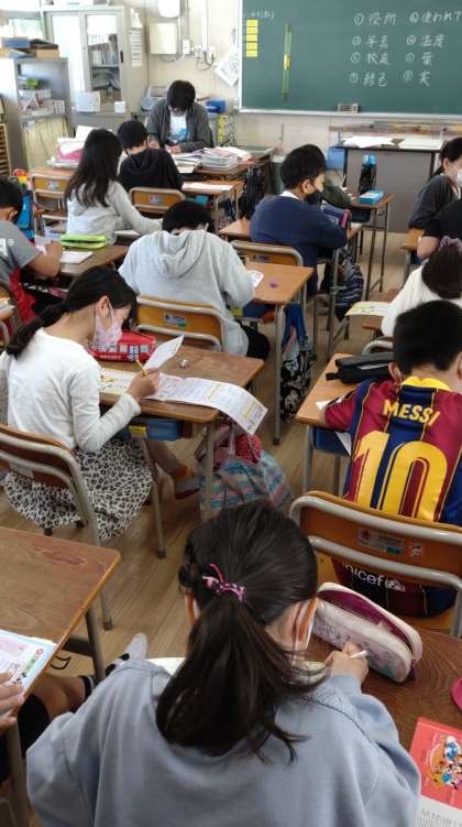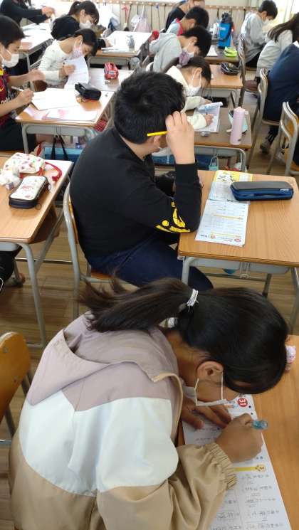 漢字の学習をしました。4年生で習った漢字をドリルやプリントで復習しています。