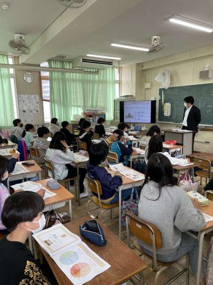 税務署より来ていただいて、租税教室の授業をしていただきました。クイズ形式で話をしていただきました。子どもたちは、しっかり話を聞いて学習していました。
