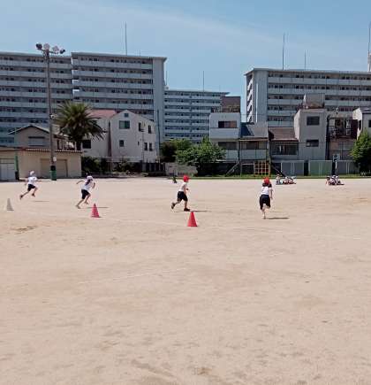 「位置について、ようい、ピッ!」の合図で全速力で走りました。
