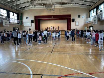 児童集会では、集会委員会が先生クイズをしました。いろいろな先生の好きな食べ物やアニメやスポーツの〇×クイズです。とても子どもたちは楽しんでいました。