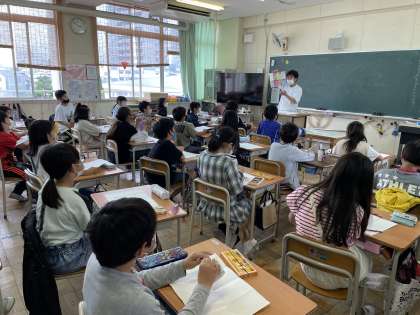 図画工作で画用紙の裏にいろいろな気持ちを書き、表にその気持ちにそった絵柄や模様をかきます。どんな作品になるか楽しみです。