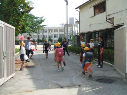 代表委員会のメンバーが、自分たちで考えた方法で、登校してくる子どもたちに、「笑顔と元気」を与えています。