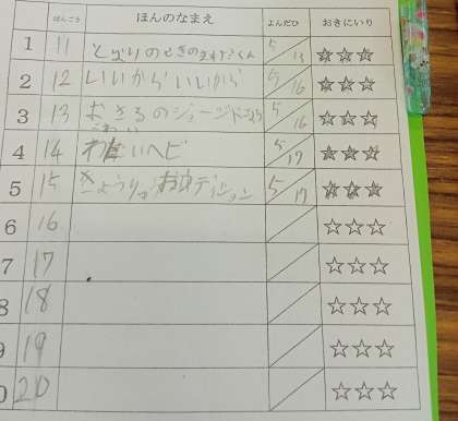 図書室で読書をしました。読書記録カードに読んだ本のタイトルを記録していきます。