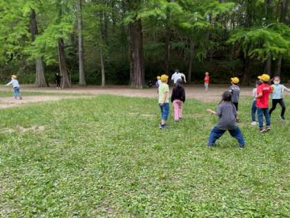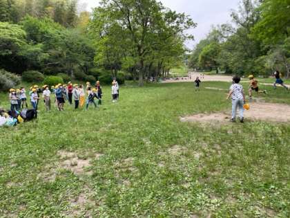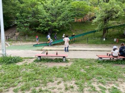千里中央公園について滑り台をしたり、広場で遊びました。