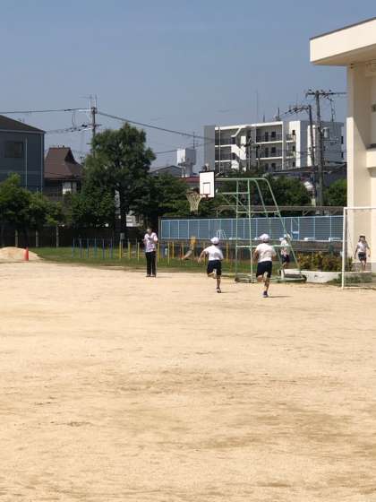 気温があがって暑さを感じるなかでの運動でしたが、適宜水分補給をしながら、自分の力を出し切って取り組みました。