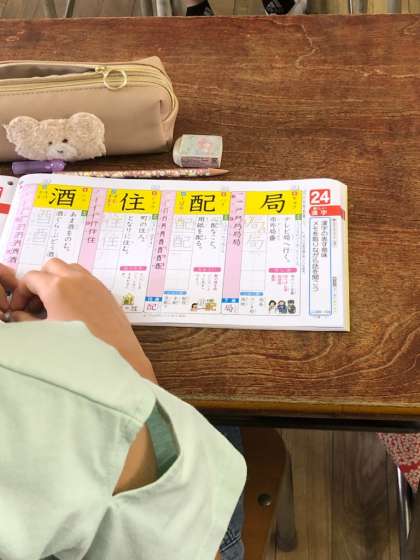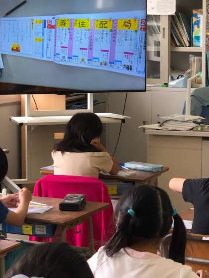 ICTを活用して、漢字の書き順や部首、音読みや訓読みの学習です。