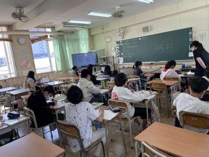 分数かける分数の計算の仕方を考えました。面積図を使って考えながら、計算方法を学習しました。