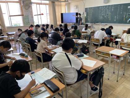 国語科で「ヤドカリとイソギンチャク」の教材を振り返り、説明文の文章構成や接続語の役割について考えました。