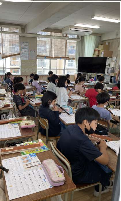 音楽時間に、リコーダーで「小さな世界」を練習しました。