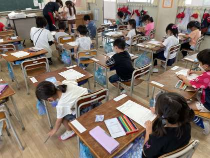 1年生は、生活科で「かんさつノート」を書きました。書いたものは、自分のファイルにどんどん入れていきます。