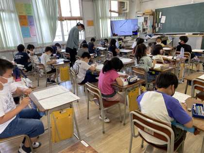 大阪市の白地図で学習しました。川に色を塗り、区名を書いて大阪市のようすを学びました。