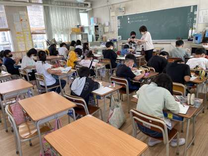算数の時間に道路の図を見て、道の交わり方について考えました。垂直や平行についての学習です。
