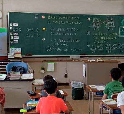 たし算では、たす数とたされる数を入れかえて計算しても答えは変わらないということを学習しました。