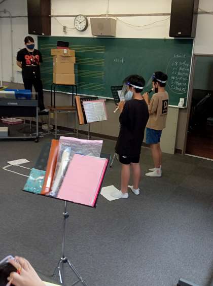 リコーダーのテストをしています。タンギングや音を伸ばすところを意識して演奏しました。