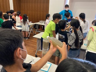 浄水場で水をきれいにする工程を、実験をして体験しながら学習しています。ひとつひとう驚きがあり、深く考えながら班で活動ができています。