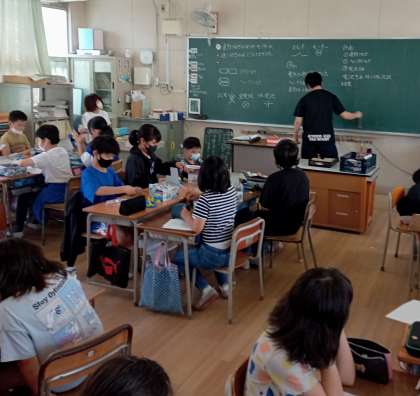 直列つなぎと並列つなぎでは、直列つなぎのほうがモーターが速く回ることを前の時間に学習しました。今日は、なぜ直列つなぎのほうが速く回るのかを考えました。