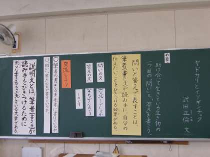 6月18日に、4年生で、国語科「ヤドカリとイソギンチャク」の単元で研究授業を行いました。