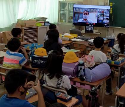 今日の児童朝会は、校長室と各教室をオンラインでつないで行われました。校長先生からは、1学期の目標を振り返ってやり残していることはないか考えてみましょうとお話がありました。