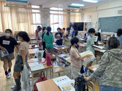 道徳の時間に「ひとふみ十年」の学習をしました。自然愛護の心を育みます。友だち同士で自然愛護について話し合っています。